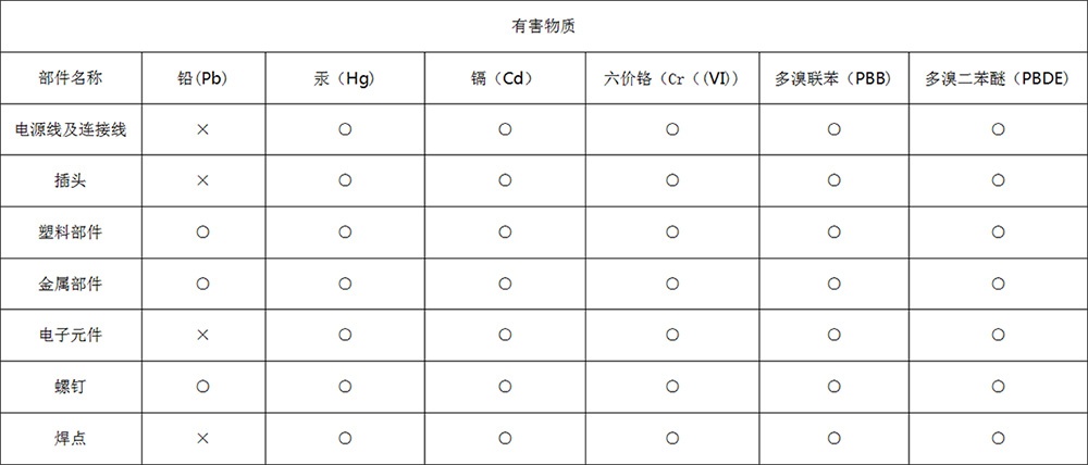 ○:表示該物質在該部件所有均質材料中的含量均在GB/26572-2011規(guī)定的限量要求以下。